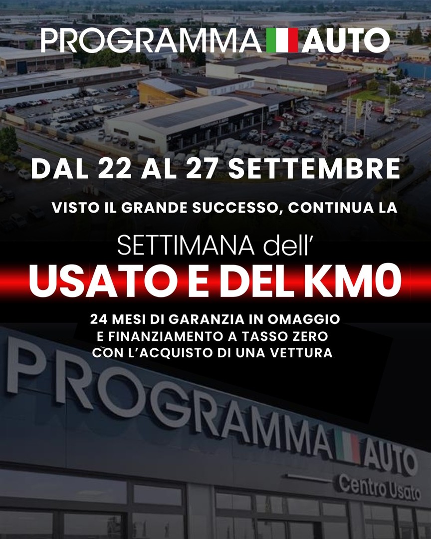 VISTO IL GRANDE SUCCESSO DELL’INIZIATIVA: la settimana dell’usato e del km0 continua fino al 27 settembre!